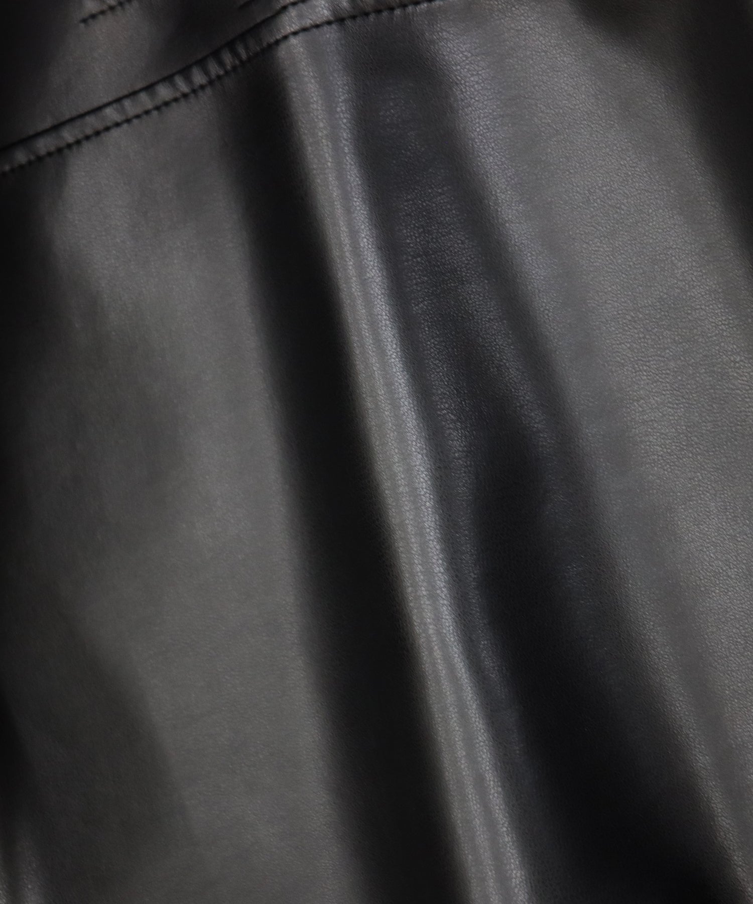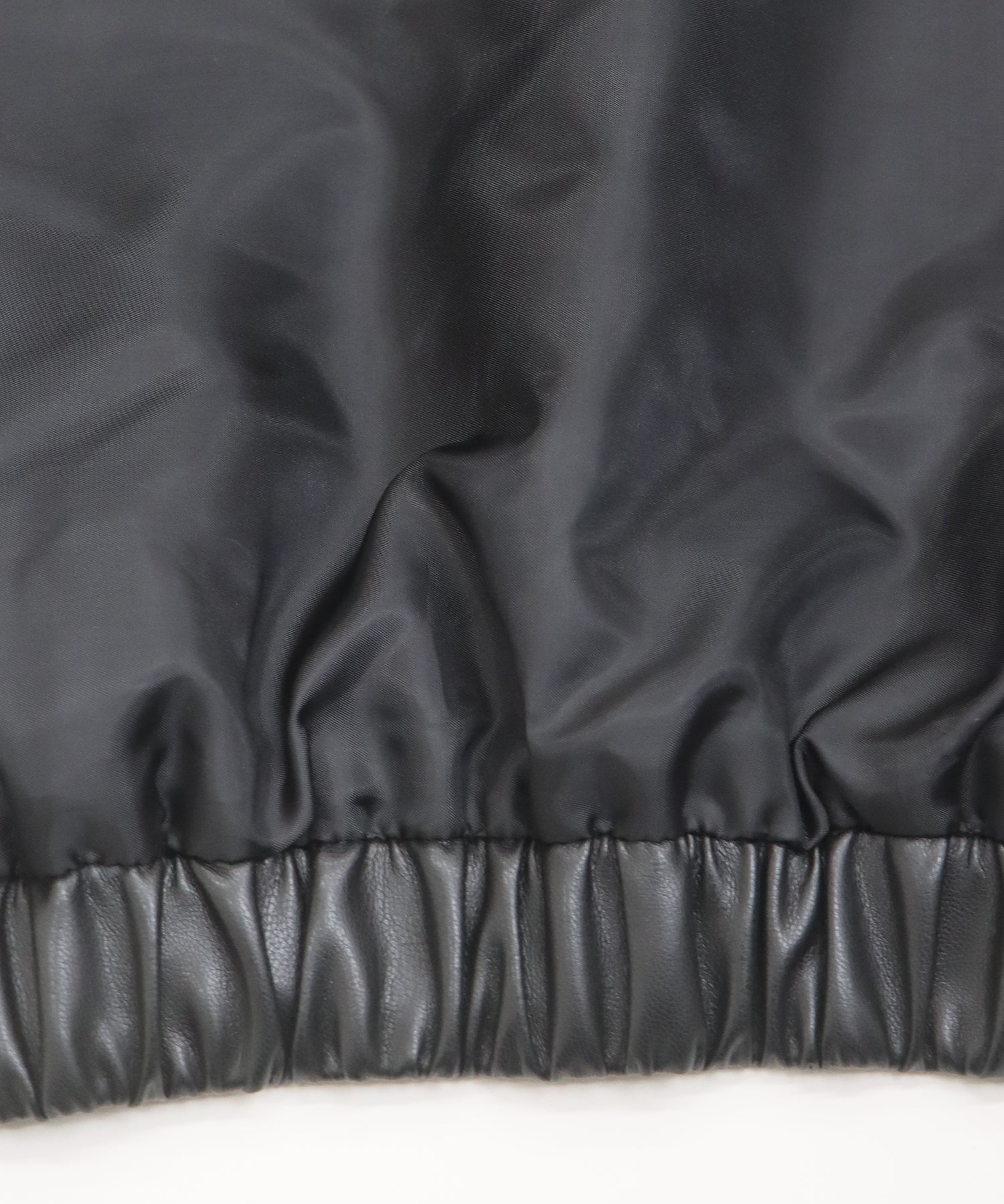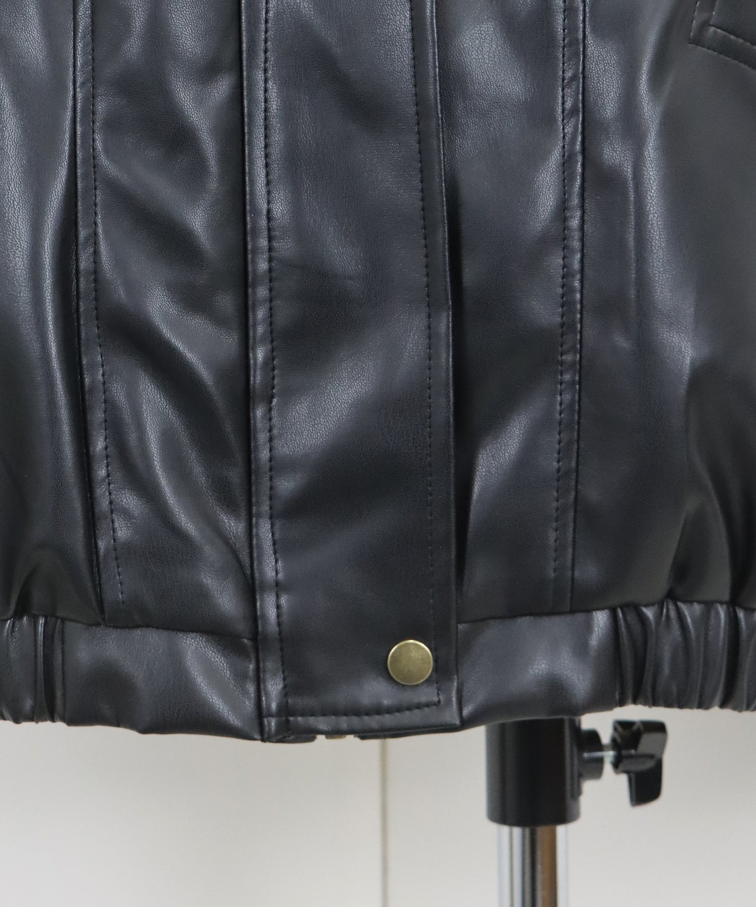?DETAIL フェイクレザー ジップアップ&スナップボタン ポケット有り 裾ゴム入り
